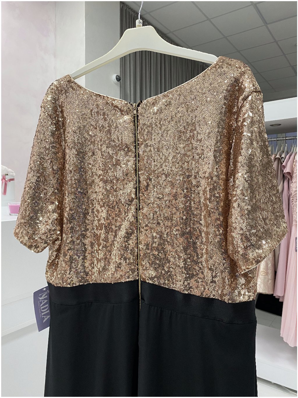 Dlhé šaty s čiernou šifónovou sukňou a flitrovaným vrchom v zlatej farbe