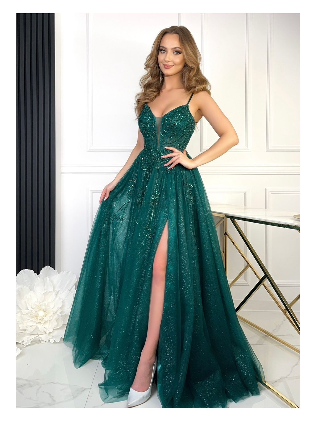 Tieto šaty sú dokonalou voľbou pre každú ženu, ktorá chce zažiariť s noblesou a sebavedomím.