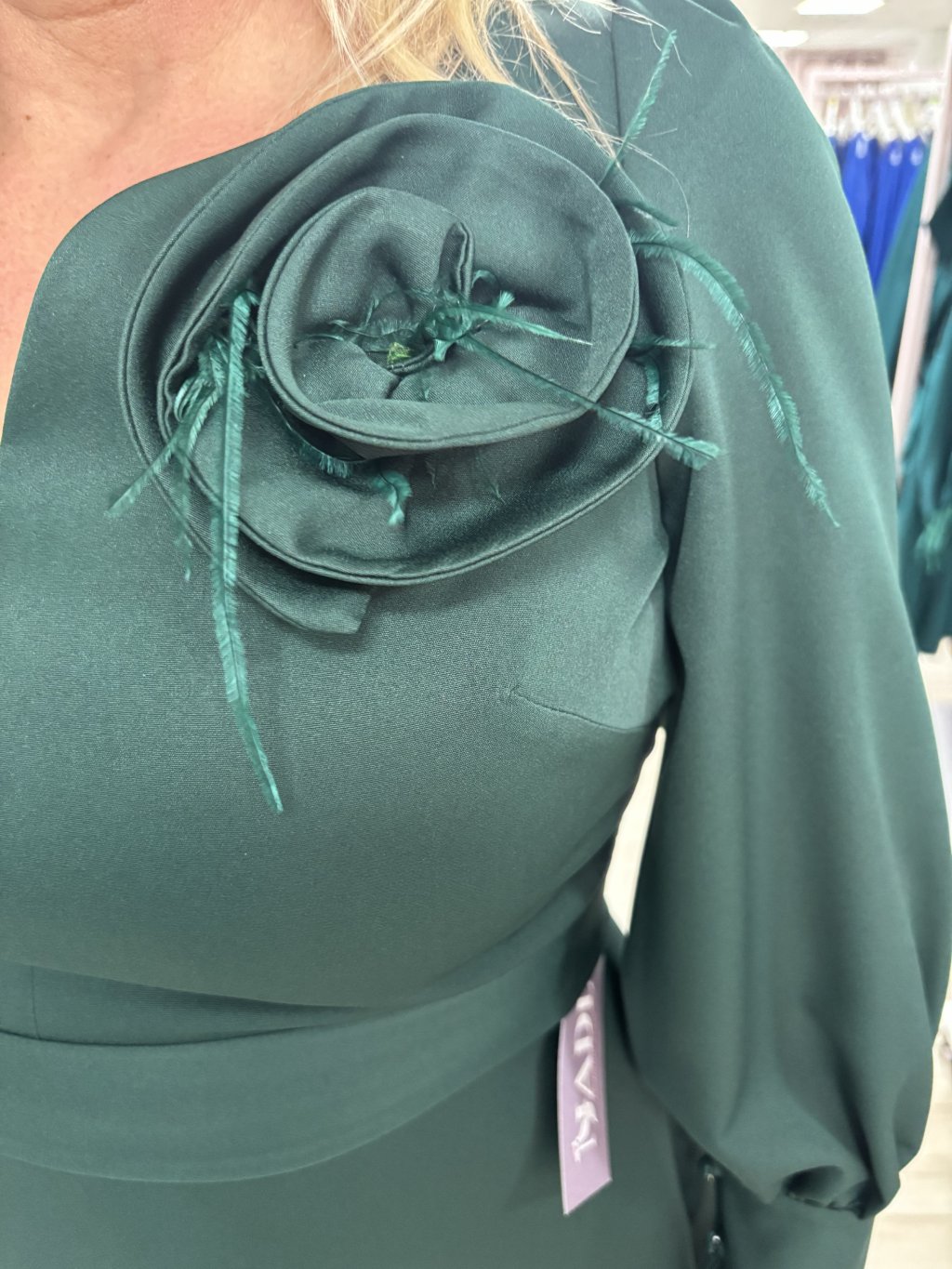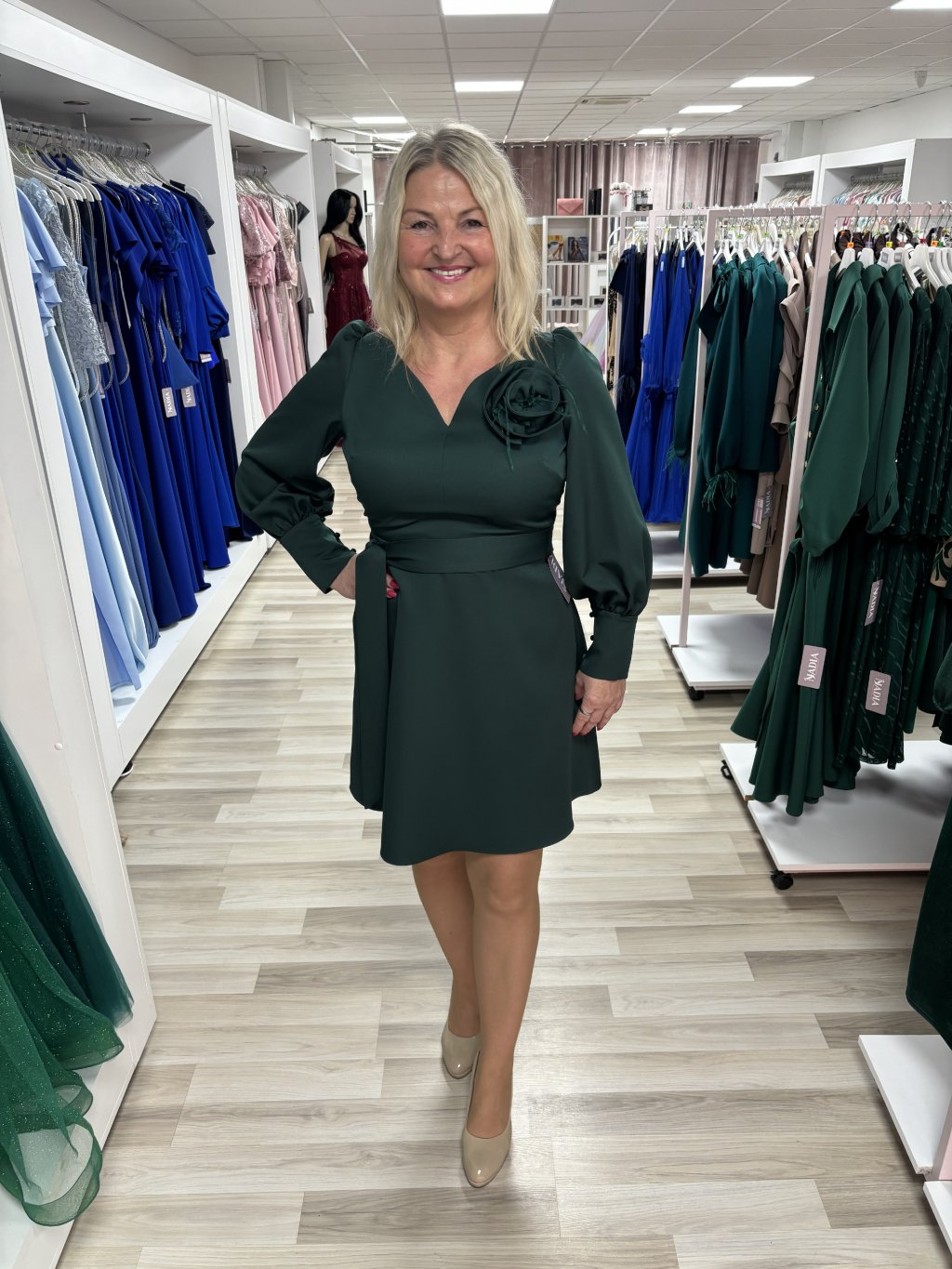 Krátke Flora šaty s ružou do "A" v zelenej farbe