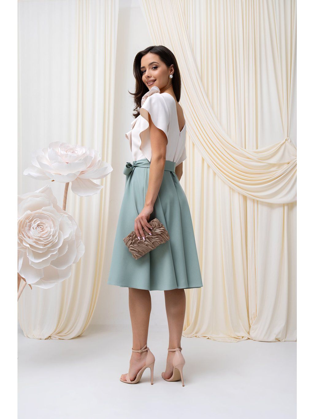 MIDI Olívia šaty s ružou vanilkovo-mätové